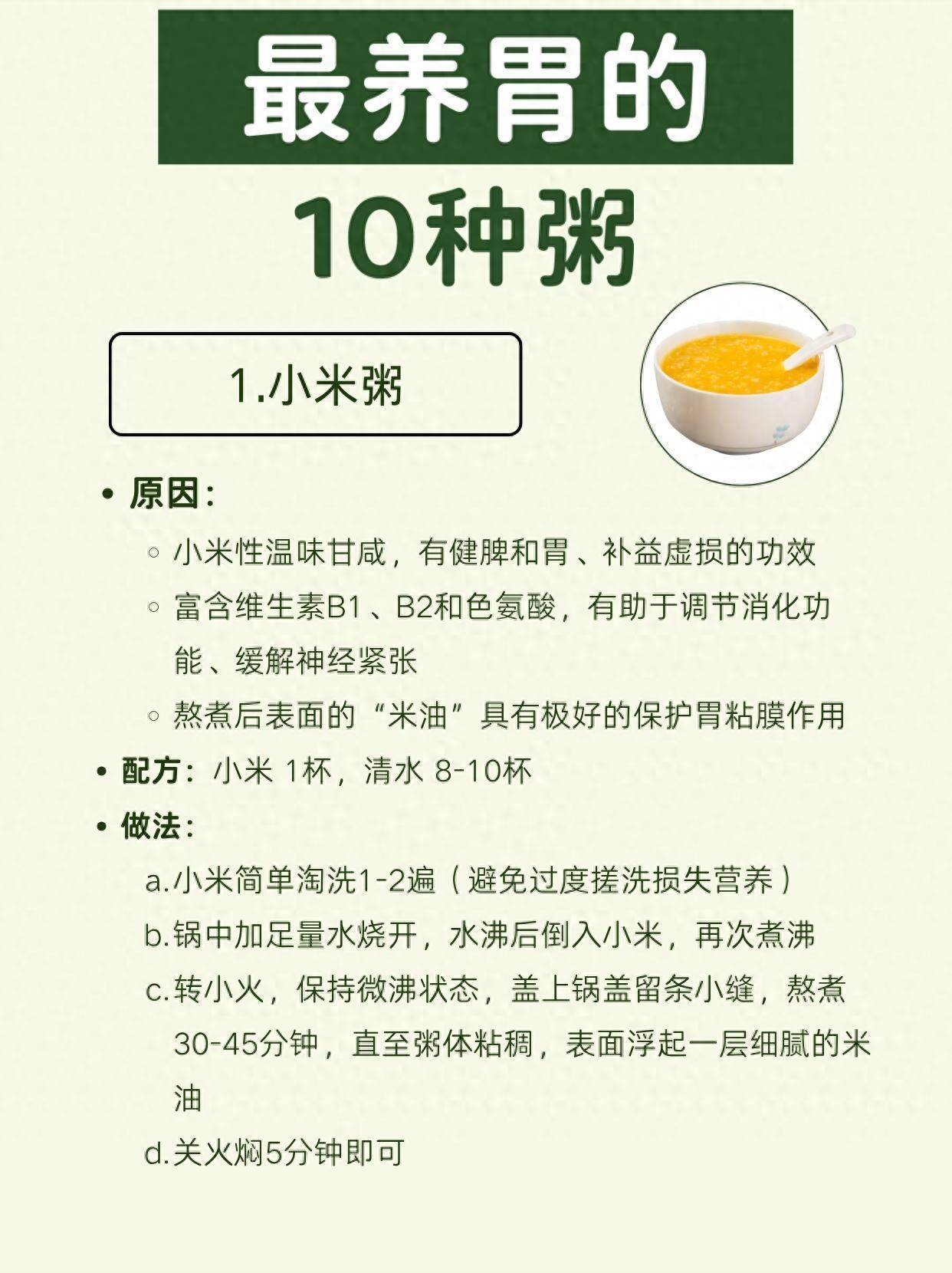 1. 小米粥:米油护胃,健脾和胃,是养胃界的“顶流”,熬出米油效果翻倍。