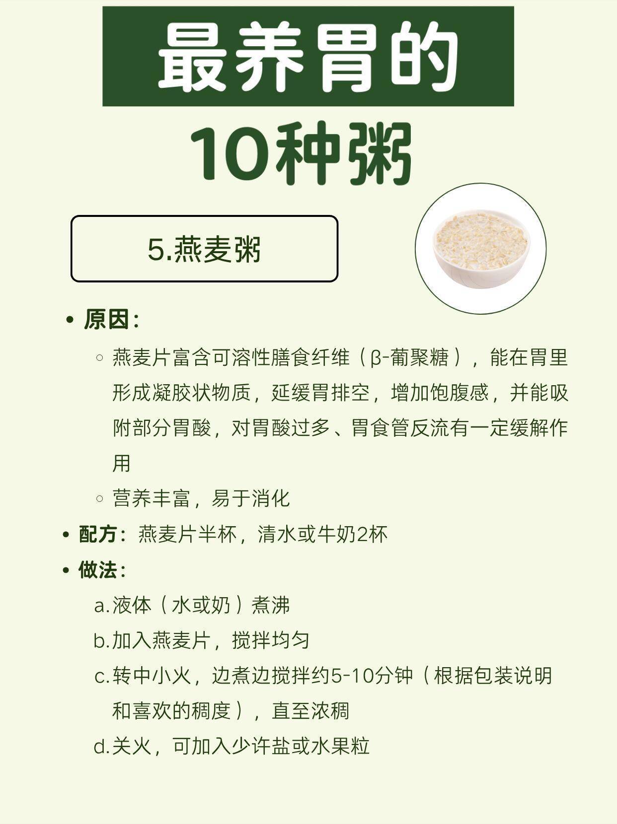 5. 燕麦粥:β-葡聚糖吸附胃酸,缓解反酸烧心,饱腹感还强。