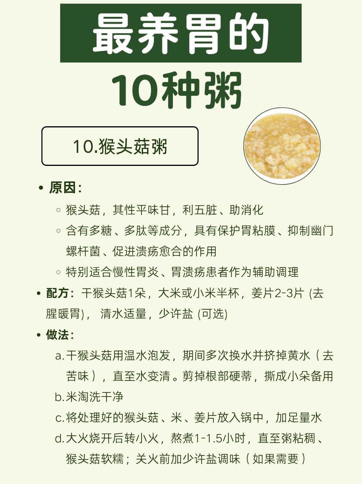 10. 猴头菇粥:保护胃黏膜,抑制幽门螺杆菌,慢性胃炎、胃溃疡人群的福音。