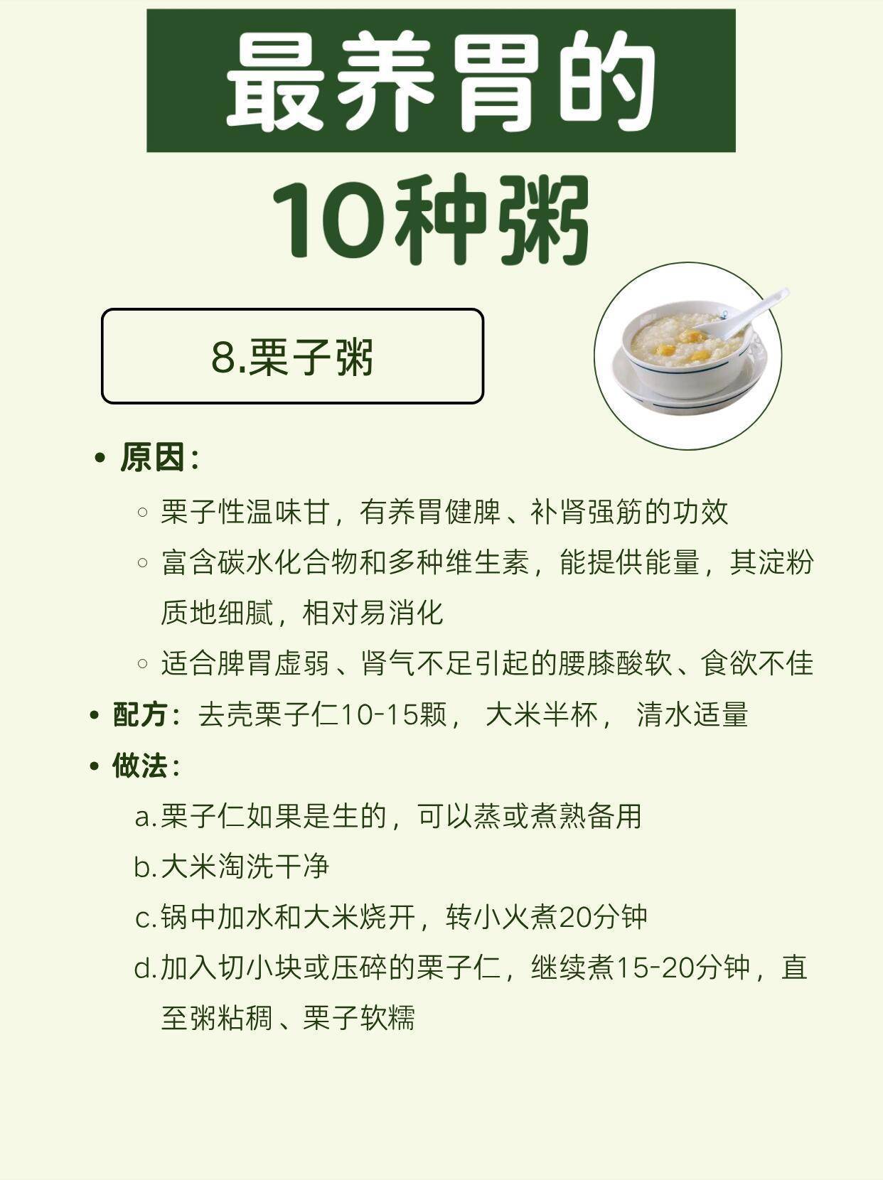 8. 栗子粥:温胃健脾,补能量,秋冬喝超合适,还能补肾强筋。