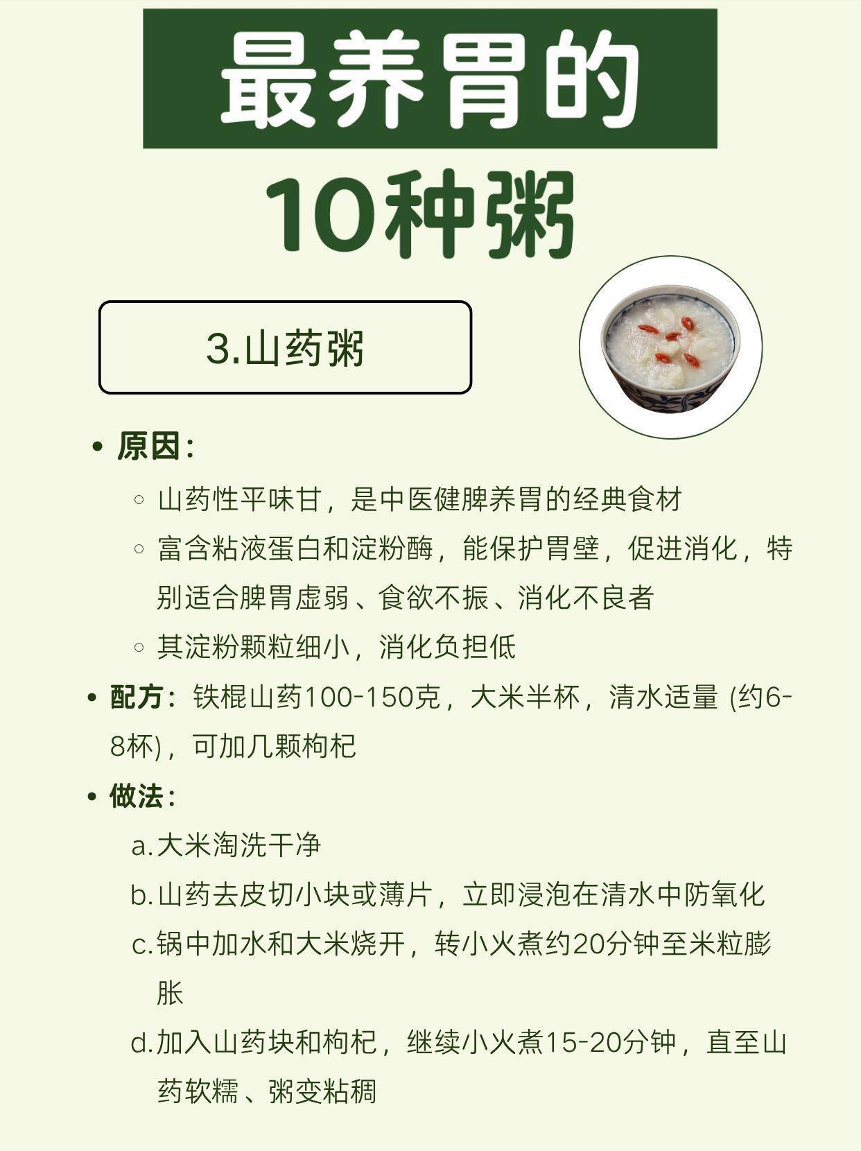 3. 山药粥:健脾养胃经典款,粘液蛋白保护胃壁,消化弱的人多喝。